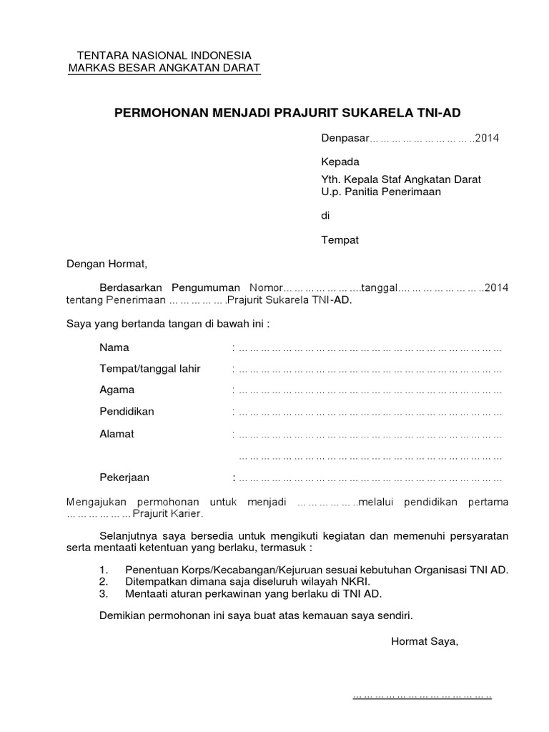 Donwload Fille Surat Lamaran Prajurit Tni Ad Tamtama : Donwload Fille Surat Lamaran Prajurit Tni Ad Tamtama ... : Scopri ricette, idee per la casa, consigli di stile e altre idee da provare.
